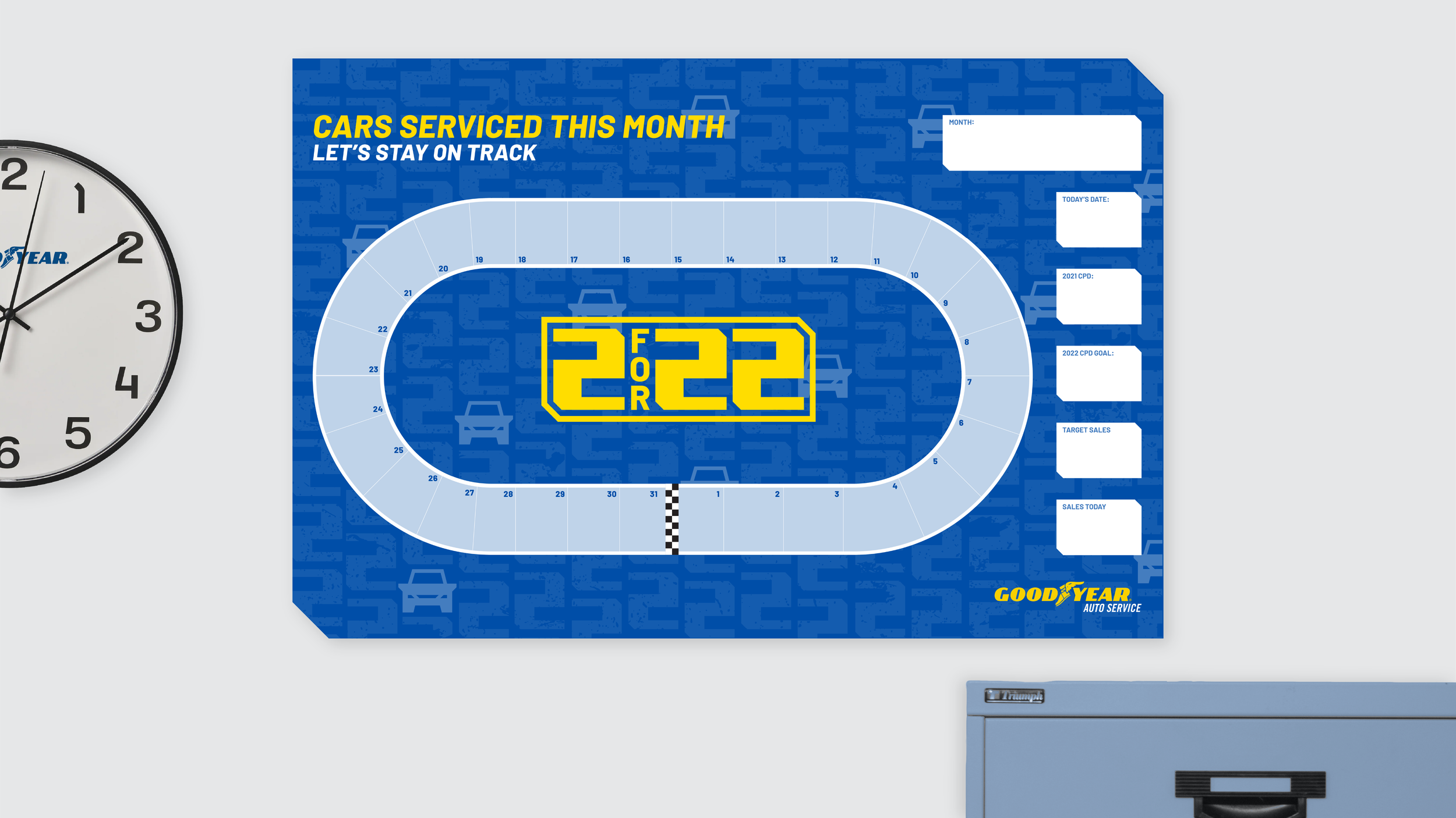 To combat declining car count in Goodyear retail stores, we set out to help define a 2 for 22 initiative to bring in two more cars per day in 2022.